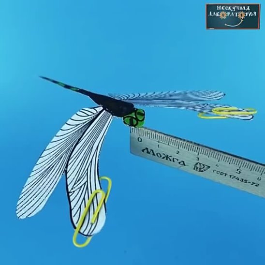 Приклеиваем шаблон стрекозы к картону, вырезаем и раскрашиваем ее. На концах передних крыльев закрепляем по одной скрепке или приклеиваем с нижней стороны кусочки пластилина. Загибаем кончик носика стрекозы и крылышки слегка вниз. Помещаем ее на палец. Стрекоза парит в воздухе! Если хвост стрекозы перевешивает, или она переворачивается вперед, уравновешиваем ее, двигая груз ближе или дальше от края.