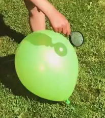 Надуваем разноцветные шарики, завязываем их и находим солнечное место. Располагаем лупу между солнцем и выбранным воздушным шариком. В результате появится маленькое яркое пятно. Водим увеличительным стеклом ближе и дальше от шарика, чтобы изменить размеры пятна. В том месте, где этот пучок меньше всего, будет самое “горячее пятно”. Фокусируем лучи на одном месте и держим лупу неподвижно до тех пор, пока шарик не лопнет (примерно 2-5 секунд). Какого цвета лопнул шарик? Красный? Зеленый? А теперь попробуем лопнуть белый и прозрачный шарики. Фокусируем лучи на одном месте и держим лупу неподвижно. Шарик не лопается? Но почему?