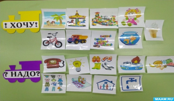 Восп.: Есть потребности, без которых можно обойтись их называют потребностями «Хочу». В: Как вы думаете, какие это потребности? (Ответы детей). А лучше разобраться в этом нам поможетдидактическая игра «Хочу и надо».