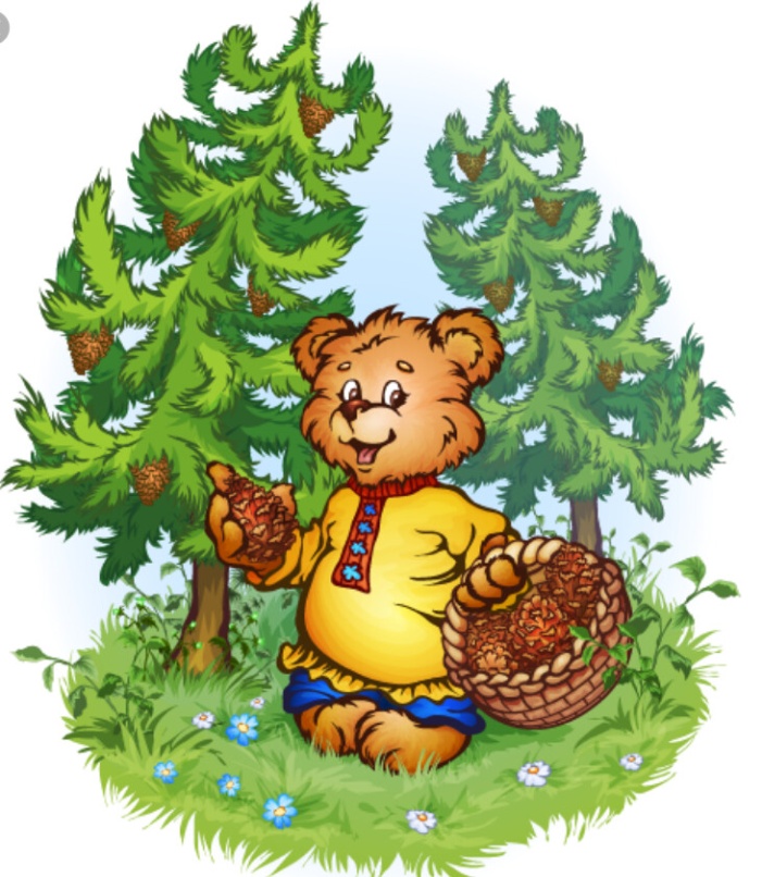 -Ой, а я нечаянно просыпала шишки. Давайте поможем Мишке их собрать в корзинку.(Дети собирают шишки в корзинку)