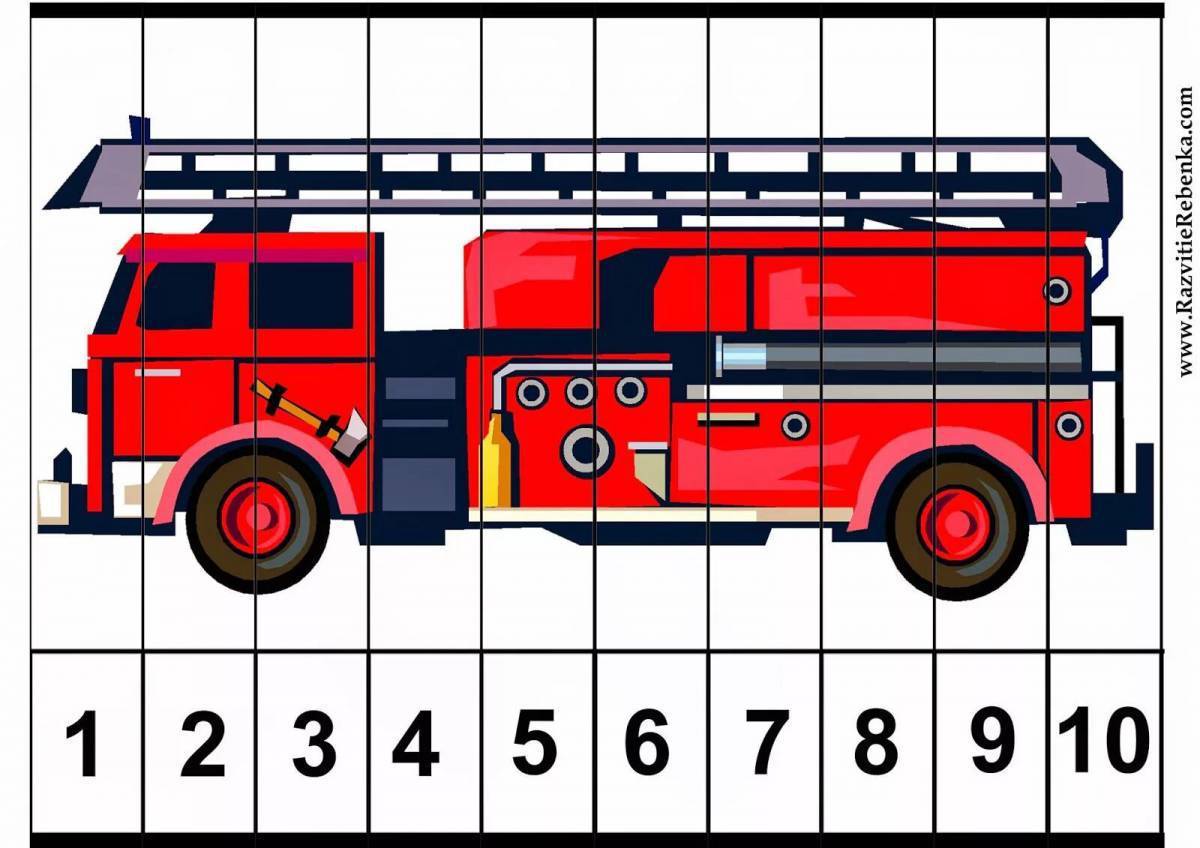 Задание «Собери пожарную машину из частей» (пазлы из 6-10 частей по уровню сложности).