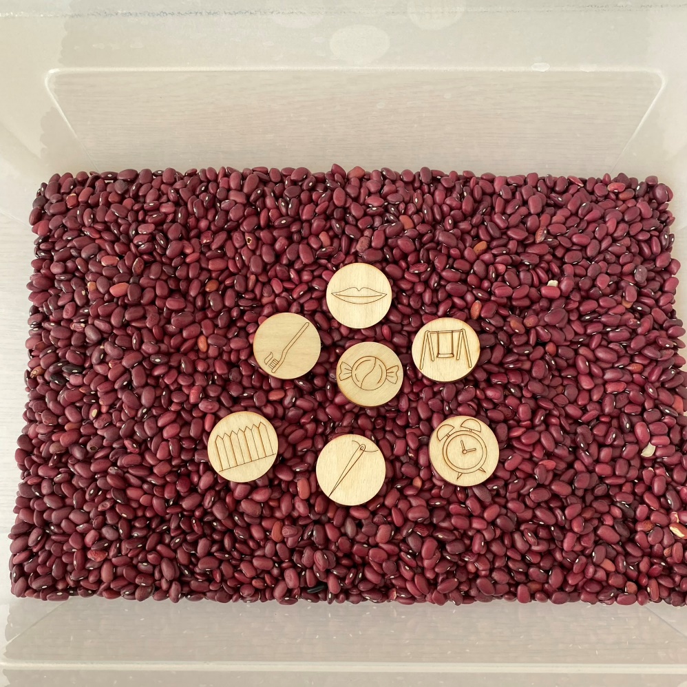 Давайте выполним гимнастику для звука «С», согласны? Но есть небольшая проблема, наши упражнения спрятались в большом ящике с фасолью, нужно их отыскать.