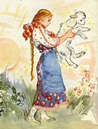 Зовет Алёнушка братца, а вместо Иванушки бежит за ней беленький козлёночек.