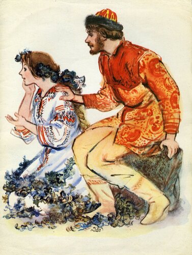Залилась Алёнушка слезами, села на стожок – плачет, а козлёночек возле неё скачет.