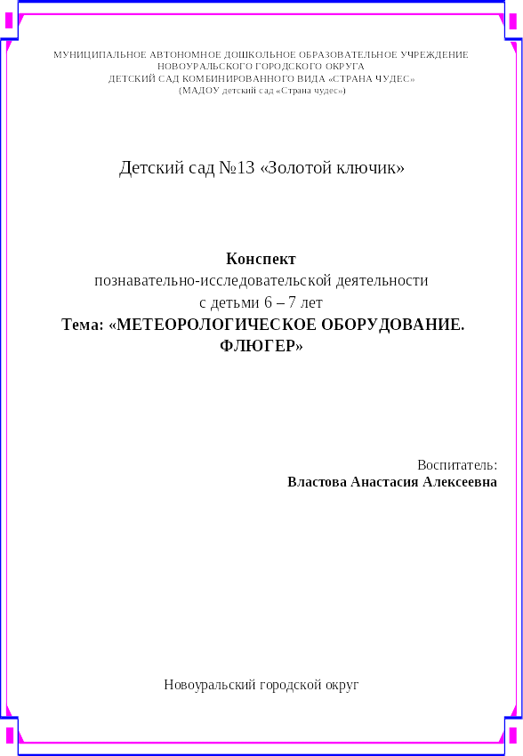 Тема: «Метеорологическое оборудование. Флюгер»