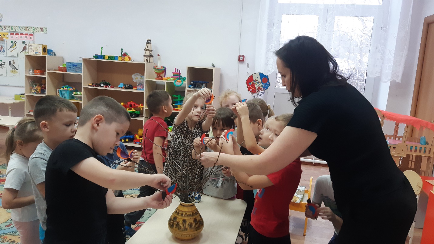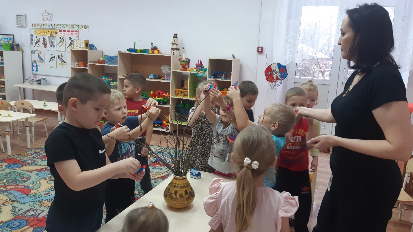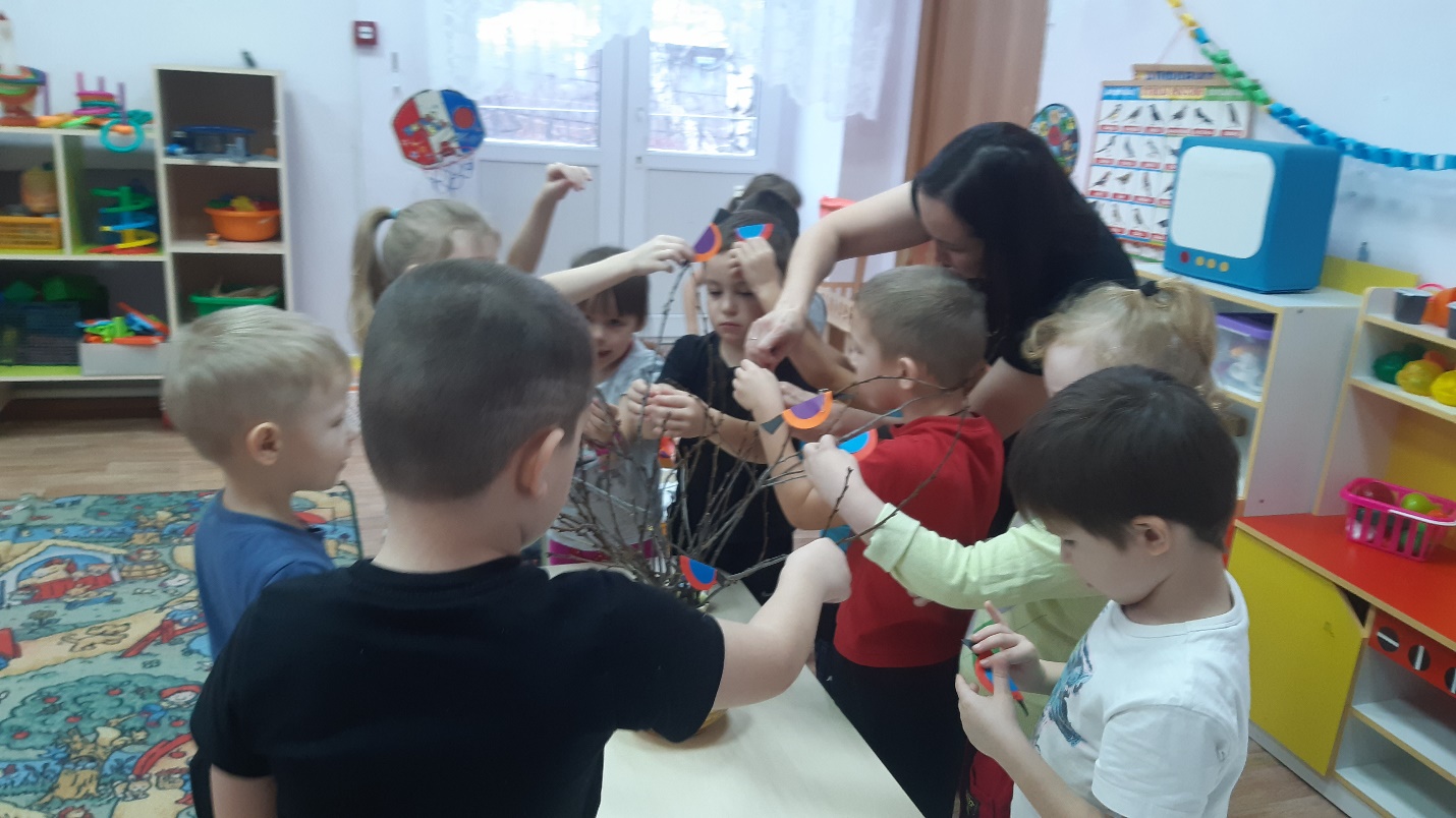 - Молодцы, ребята! Посадим птиц на веточки и оставим их отдыхать.