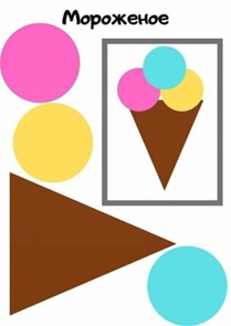 Материал и оборудование: иллюстрации разного вида мороженного, клей карандаш, заготовки для аппликации, салфетки.