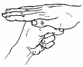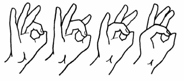 Указательный палец согнуть, остальные пальцы сомкнуть и оставить