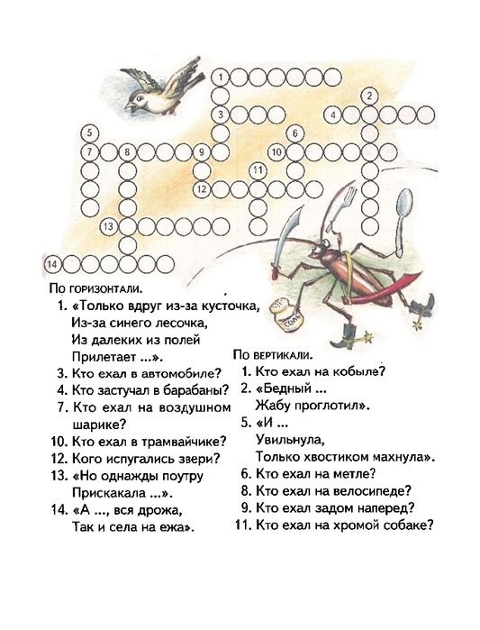Прочитай сказку Корнея Чуковского «Тараканище» и заполни кроссворд.