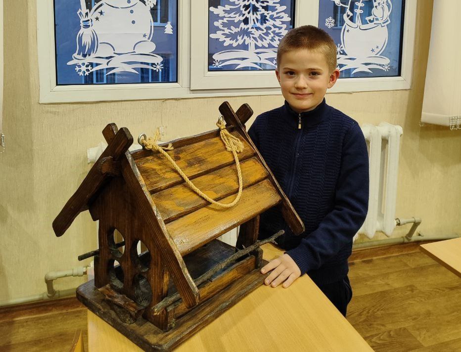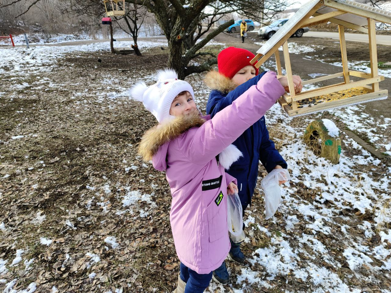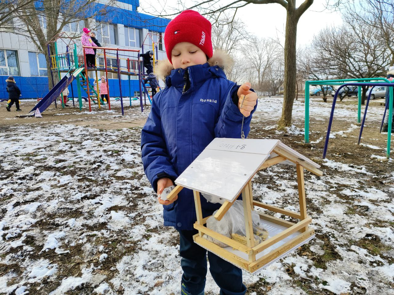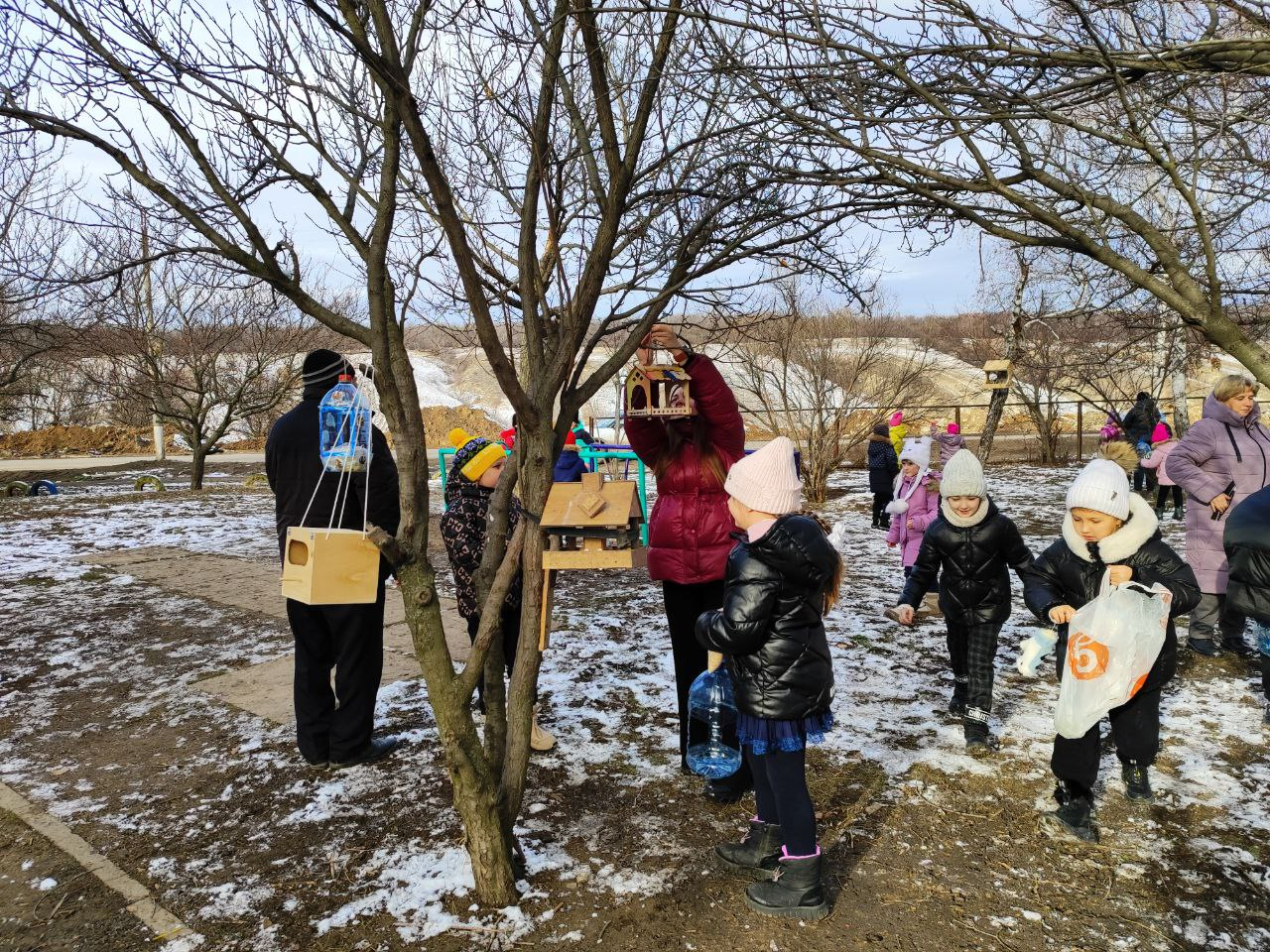 рисунки детей о птицах, кормушки, изготовленные руками детей;