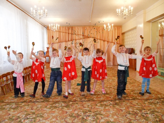 с включением причисляемых к фольклору словесных, музыкальных, хореографических видов народного творчества во все формы организации музыкального воспитания.