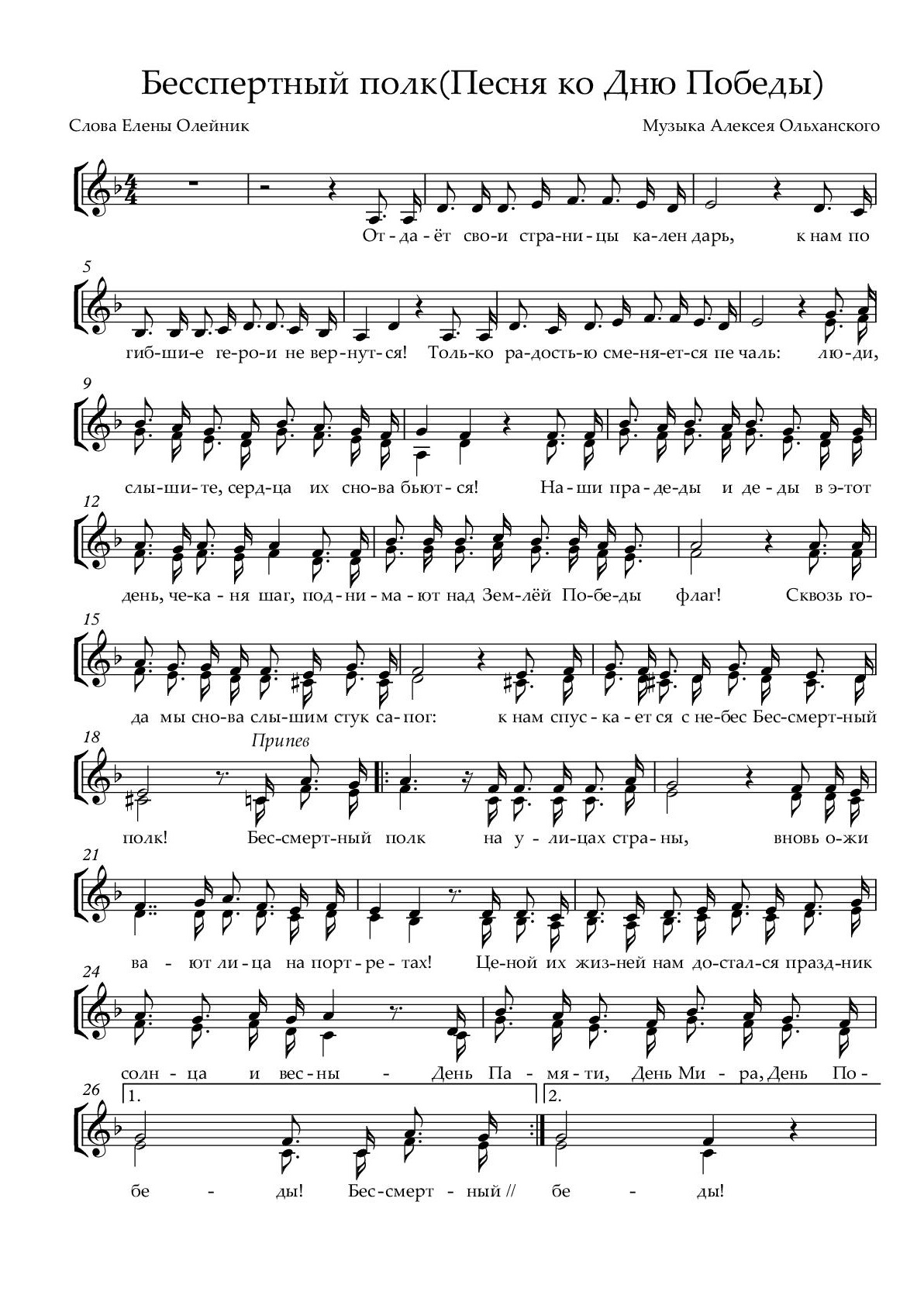 5. Работа над исполнением песни «Бессмертный полк», музыка А. Ольханский, слова Е. Олейник (Приложение № 1):