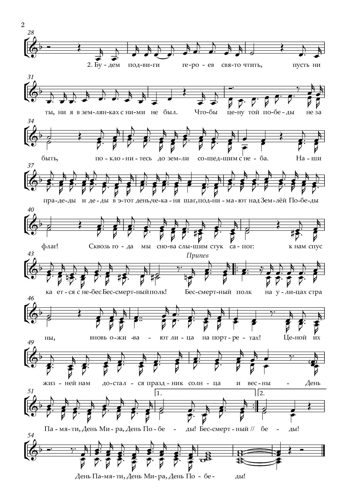 5. Работа над исполнением песни «Бессмертный полк», музыка А. Ольханский, слова Е. Олейник: