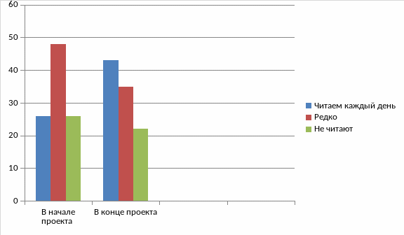 В рамках простого опроса родителей в начале и в конце проекта «Как часто Вы читаете книги своим детям?» мы видим положительную динамику.