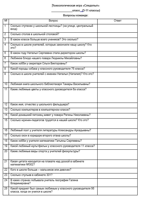 команда получает письмо вопросами, на которые всем классом необходимо ответить. Игра проводится на переменах, каждой параллели классов была отведена своя перемена, дополнительную помощь обучающимся в случае необходимости оказывают классные руководители.