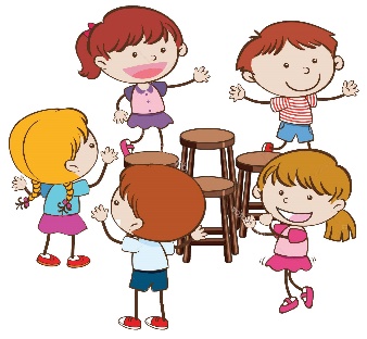 В круг ставят стулья (на один меньше, чем число участников). Игроки встают рядом со стульями и по сигналу ведущего (звучит музыка) начинают ходить вокруг них. Внезапно музыка замолкает - каждый должен сесть на стул.