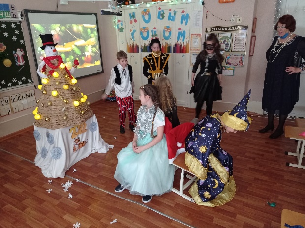 Оборудование: новогоднее украшение класса, презентация, реквизиты для игр, новогодние подарки