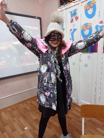На спинке двух стульев висит по зимней куртке с вывернутыми рукавами, а на сиденьях лежит по меховой шапке, шарфу и паре варежек.