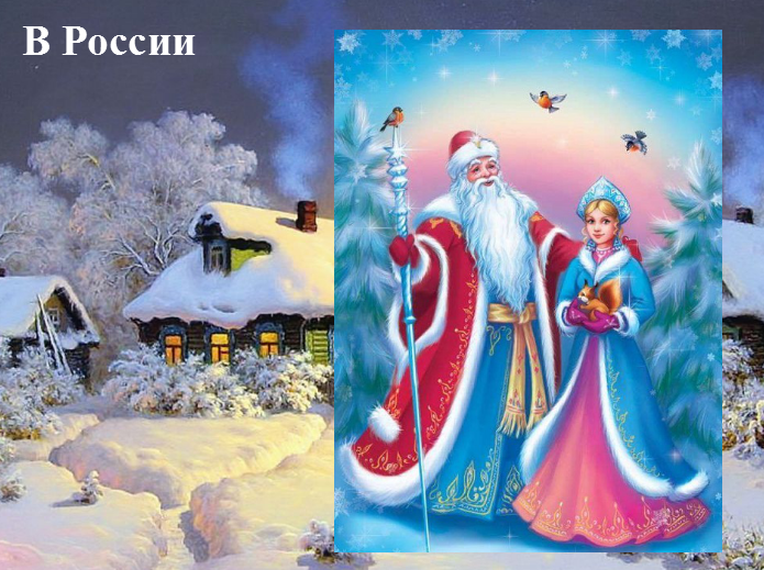 (Презентация. Слайд 23. Идущий Дед Мороз + звучит русская музыка).