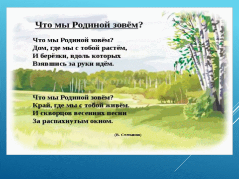 Ведущий: Слово «Родина» сопровождает нас с раннего детства и не покидает до конца жизни.