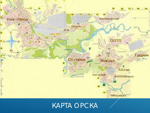 Ведущий:Молодцы, правильно. А у меня для вас следующее задание. У вас на столе лежат контурные карты города Орска (Приложение 3). Покажите примерные границы и подпишите названия районов. Задание понятно?