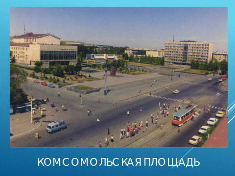 Ведущий:Остановка «Центр».Итак, мы приехали в центр города.(Слайд №5, Приложение 1) Ребята, как называется площадь, на которой мы находимся? Обратите внимание на слайд.