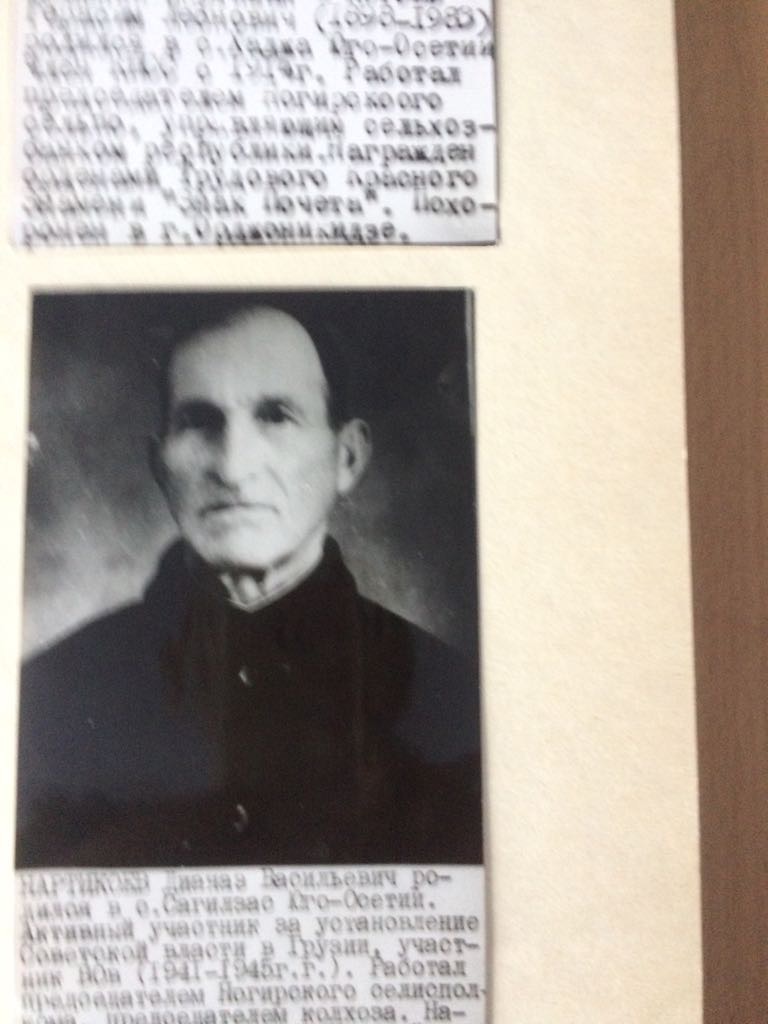 Нартикоев Д.В. Активный участник за установление Советской власти в Грузии, участник ВОВ (1941-1945г.) Работал председателем Ногирского селисполкома, председателем колхоза.