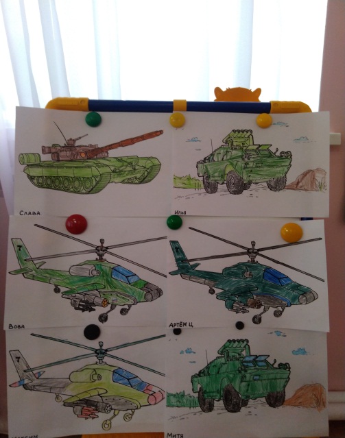 - Рассматривание иллюстраций по теме «Армия России», «Наши защитники», «Военная техника»