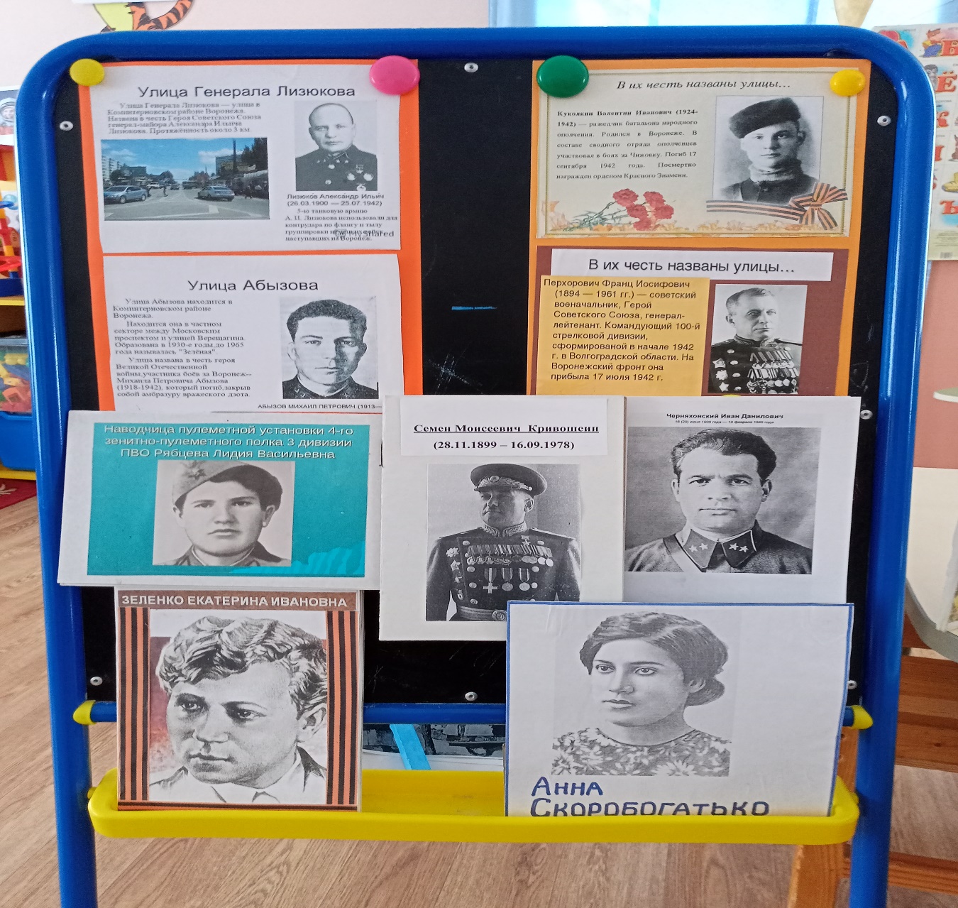 • познакомить детей с улицами Воронежа, названными в честь героев ВОВ;