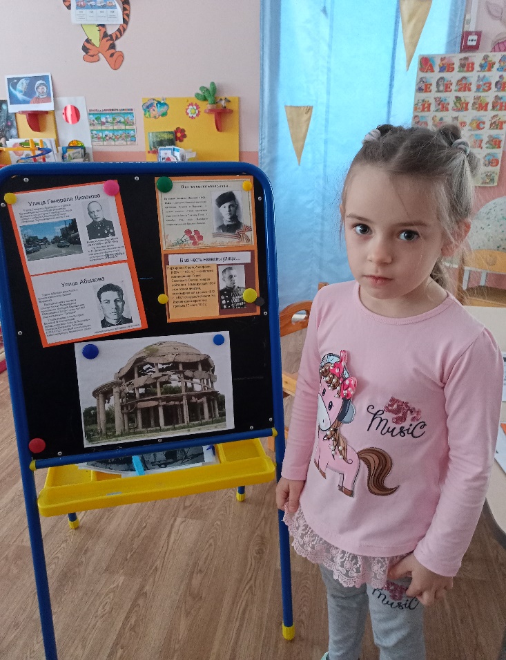 3 этап –итоговый: подведение результатов (оформление коллажа «Наши Защитники» и «Видеоэкскурсия по улицам города, названным в честь героев ВОВ»,слушание песен о войне ипобеде, создание альбома «Имена героев в названиях улиц нашего
