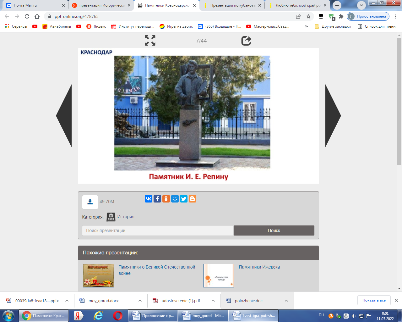 Презентация интерактивной игры «Культурное наследие»