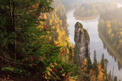 5.Усьвинские столбы - известняковый массив высотой 120 метров протянулся на километры по правому берегу Усьвы. Как туристический объект интересует скалолазов, спелеологов и любителей археологии. Здесь множество пещер и гротов, причем регулярно открываются новые: скала довольно сложна для восхождения и не вся обследована. Отдельная достопримечательность — Чертов Палец, вертикальный скальный выступ высотой 70 метров.