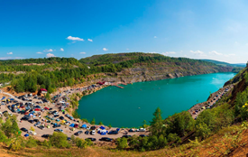 6.«Голубые озера» Александровска. «Голубыми озерами» называют затопленные выработки месторождений известняка, расположенные рядом с городом Александровск. Вода в них действительно имеет голубой оттенок, который появляется из-за примесей меди и известняковых пород. Самый глубокий водоем – озеро Котлован, максимальная глубина которого превышает 70 метров.