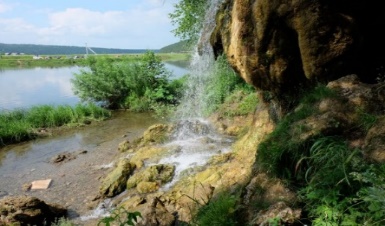 8.Водопад Плакун - один из немногочисленных уральских водопадов. Расположен на реке Сылва близ поселка Суксун. Начало берет не из реки, а скальной расщелины, образует пятнадцатиметровый ручей и падает с высоты 7 метров, издавая сильный гул. Вода чистая, для питья пригодна без обработки. Считается святым источником, потому притягивает паломников для совершения омовений. Чаша водопада оборудована купелью.
