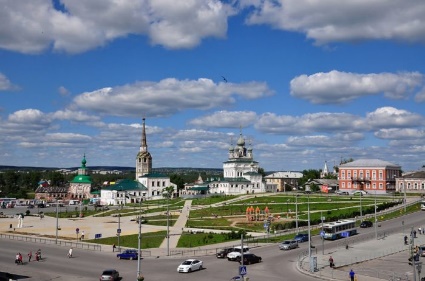 10.Соборная площадь в Соликамске. Здесь расположились сразу три достопримечательности Соликамска. Соборная колокольня — российский аналог Пизанской башни, ее наклон по вертикали определяется даже без специальных приборов, на глаз. Верстовой столб Соликамска указывает начало прямого пути, прозванного Государевой дорогой, из центра России в Сибирь. И Троицкий собор — строение XVII века, самое масштабное и красивое среди религиозных объектов края.
