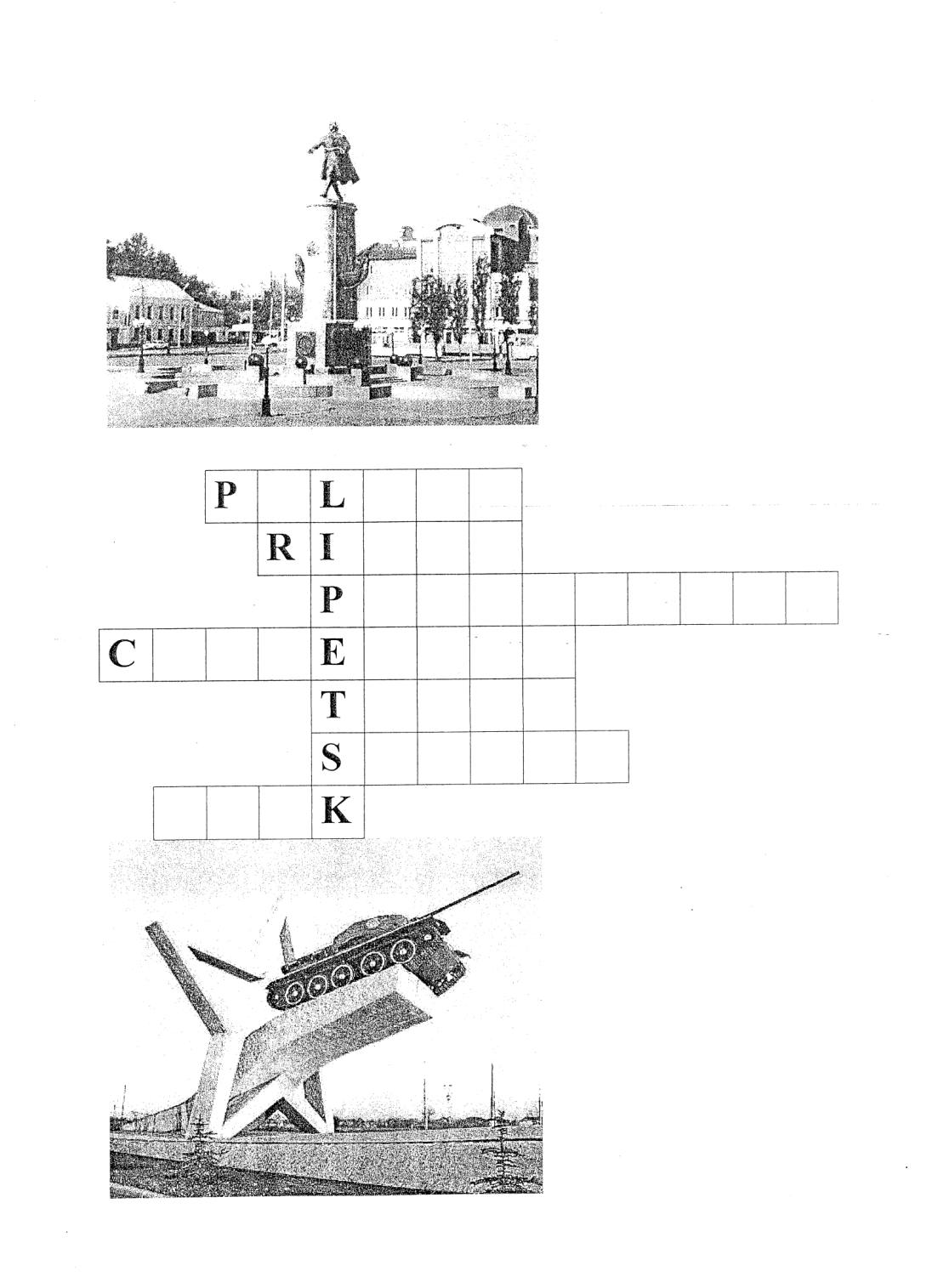 Установка: Now, children I have a crossword for you. Let’s have a little fun. This is a puzzle. Insert the words which are connected with our city. So try to do it.