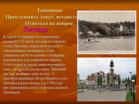 1. Липецк возник на месте другого города, существование которого относит предание к глубокой древности.