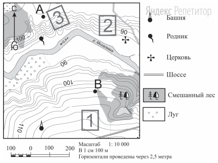 Изучите карту, снабженную условными знаками. Запишите расшифрованные знаки словами.