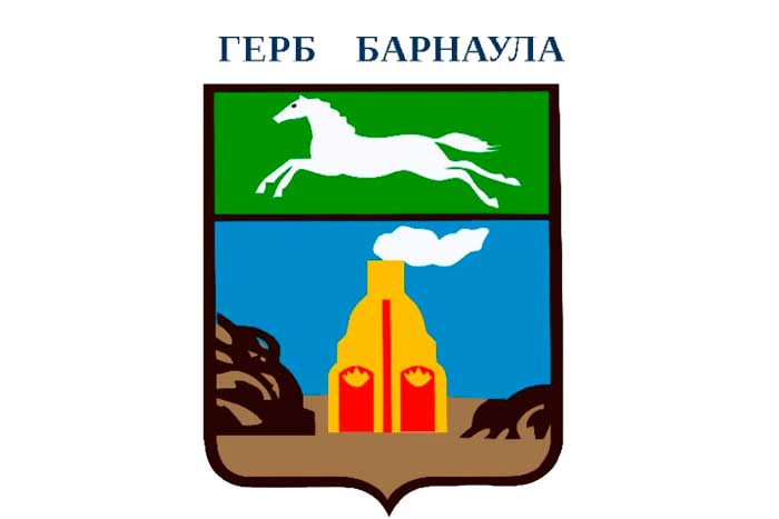 (Это прямоугольное полотно голубого цвета, в центре полотна герб г. Барнаул (голубой цвет-цвет воды р. Обь, на берегу которой стоит Барнаул)).