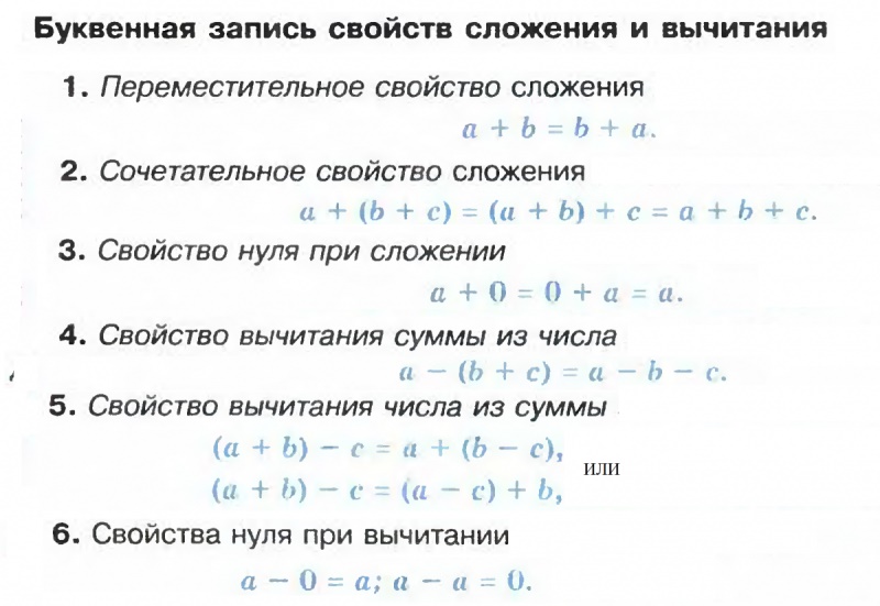 Свойства сложения и вычитания натуральных чисел примеры: