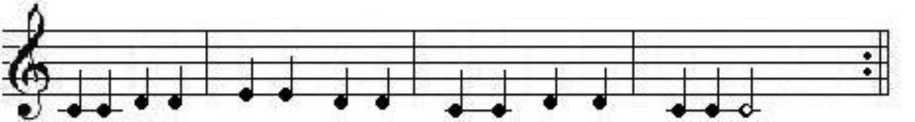 Независимо от того, что ученик уже начал играть на скрипке, занятия над развитием слуха следует продолжать, так как до сих пор ученик мог петь по нотам только уже знакомые, выученные мелодии. Спеть же по нотам новый, незнакомый мотив ученик не сможет до тех пор, пока он не научится представлять себе мысленно ступени лада. Допустим, ученику предложено спеть такую мелодию:
