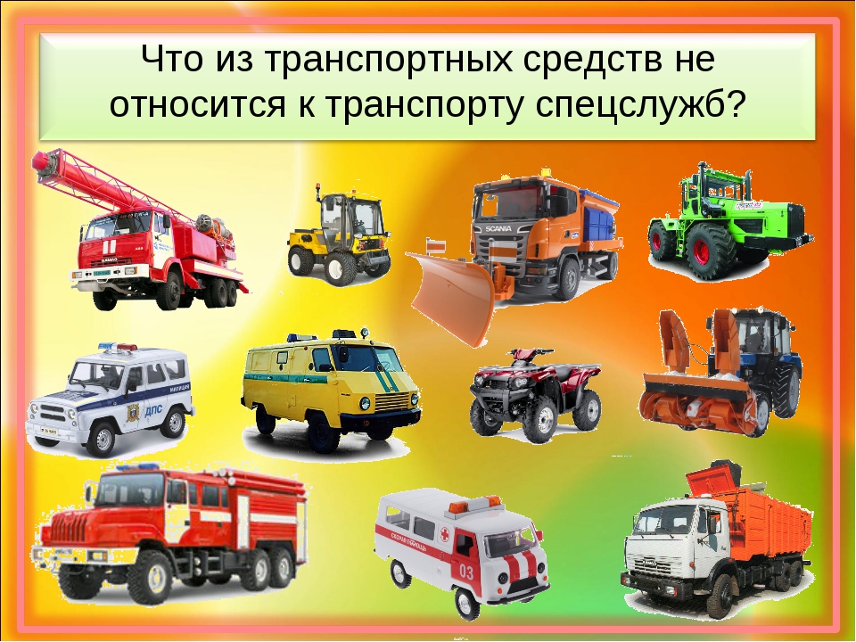 обобщить представления обучающихся о специальном транспорте, особенностях внешнего вида и его назначении;