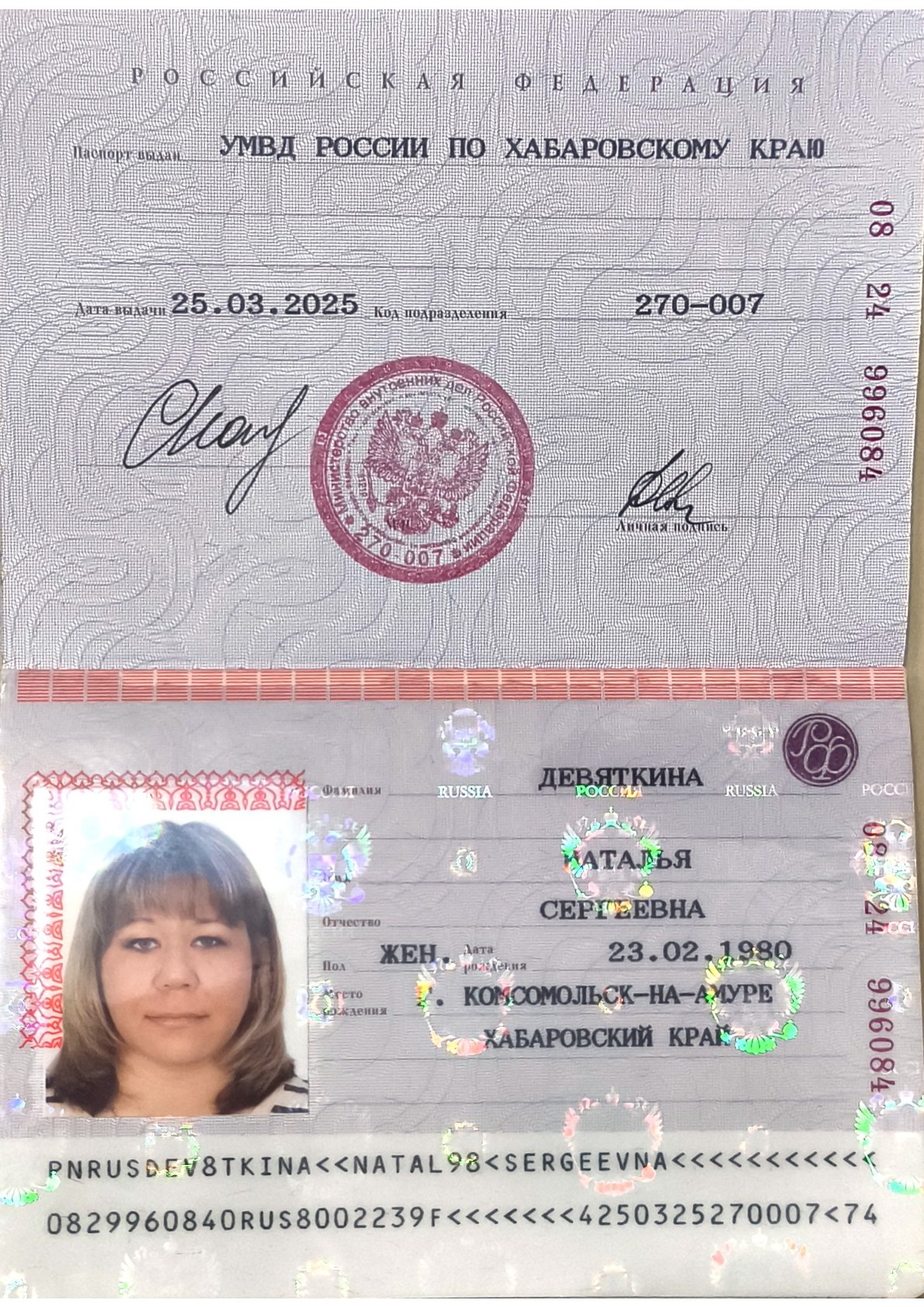 1.Фамилия, имя, отчество | Девяткина Наталья Сергеевна |