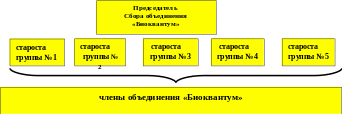 Участие обучающихся объединения «Биоквантум» в самоуправлении происходит так же путем выбора председателя Сбора объединения, старосты МИГ (группы) и распределения их обязанностей, планирования дел по интересам и возможностям.