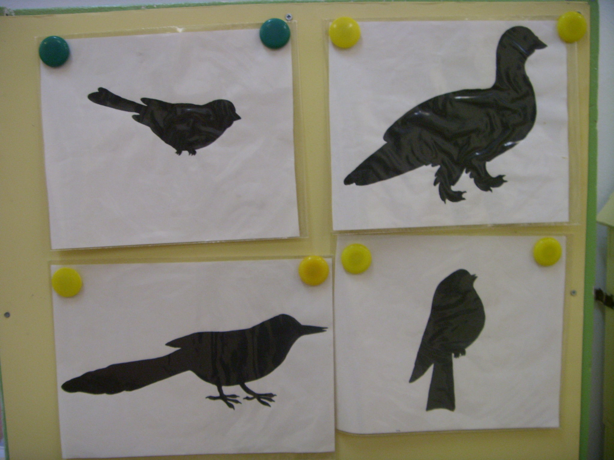 А сейчас мы с вами зайдём в художественную галерею. Посмотрите, художник хотел нарисовать птиц, но у него была краска только чёрного цвета. И вот, узнаете ли вы какую птицу нарисовал художник на картине. Как вы думаете кто это?