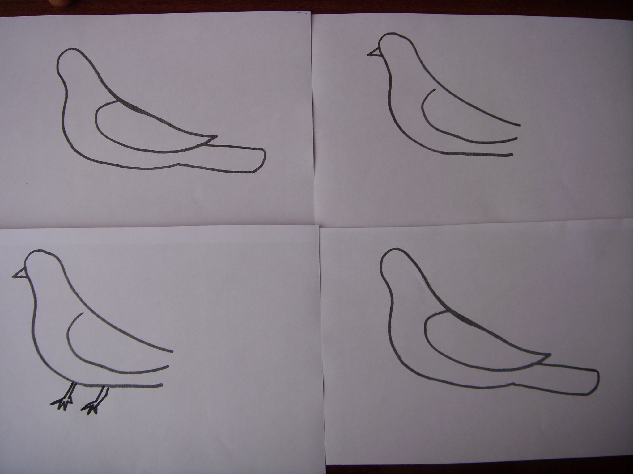 В. Молодец, Кирилл. А сейчас мы с вами сядем за столы. Посмотрите ребята на картинку и дорисуйте птиц. Чего там не хватает? (Дети дорисовывают птиц). А раскрашивать птиц будете дома.