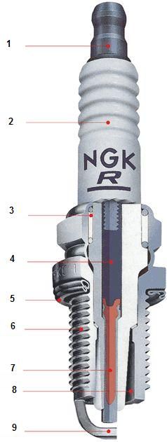 Чтобы сделать работу торговли и мастерской наиболее эффективной, компания NGK разработала для автосервиса сортименты V-Line и LPG LaserLine. Iridium IX - альтернатива для повышенной мощности Эти свечи зажигания повышенной мощности со средним электродом из благородного металла иридий применяются многими изготовителями для заводской комплектации. Они были разработаны специально для новейших двигательных технологий, но и для старых моделей они представляют альтернативу стандартным типам, чтобы полностью использовать резервы мощности. Материал электрода иридий почти нечувствителен к электроискровой эрозии. Иридий позволяет изготавливать особо тонкие средние электроды диаметром всего 0,6 мм. При тонких средних электродах поступает больше воспламенимой смеси для искры зажигания. Это даёт надёжноеТиповое обозначение свечей зажигания NGK состоит:Комбинация букв (1-4) перед калильным числом обозначает диаметр резьбы, раствор шестигранного ключа, а также конструкцию.5-я позиция (цифра) обозначает калильное число.