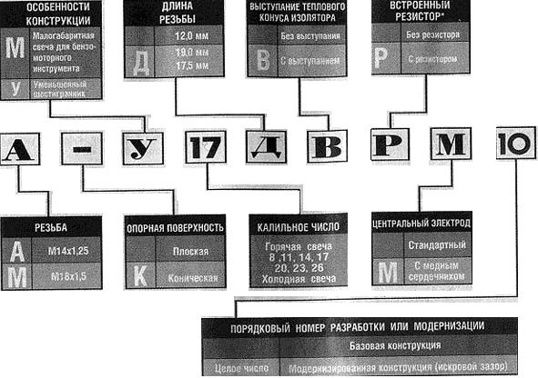 Для обеспечения всего спектра бензиновых двигателей свечами зажигания последние производят с различными параметрами, которые отражаются в условном обозначении свечи .
