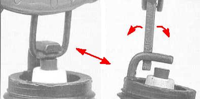 В среднем износ свечи через 15000 км пробега даже на исправном двигателе составляет 0.1 мм. Данный износ влияет на искрообразование и соответственно на правильную работу свечей и двигателя. В следствии этого очень важно следить не только за внешним состоянием свечи зажигания, но и за базированием электродов и зазором между ними. Как правило зазор для каждого автомобиля и двигателя индивидуален, приводится в руководстве по эксплуатации на автомобиль. Зазор свечей зажигания легче всего выставлять применяя наборные щупы или шаблоны (показан на рисунке ниже) и приспособление для корректировки зазора и базирования электродов показанное на рисунке ниже.