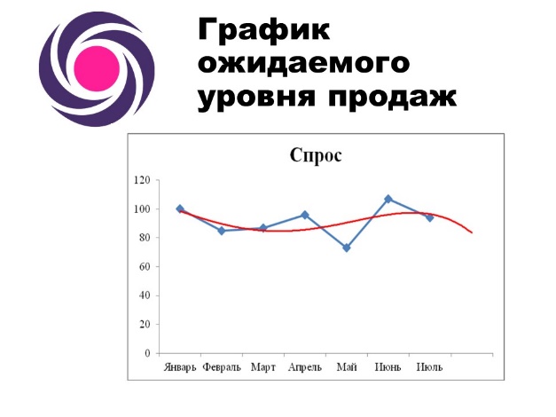 Используя возможности программы MSExcel построить график обзора ожидаемого уровня продаж на весь год, по месяцам, образец представлен на рисунке.